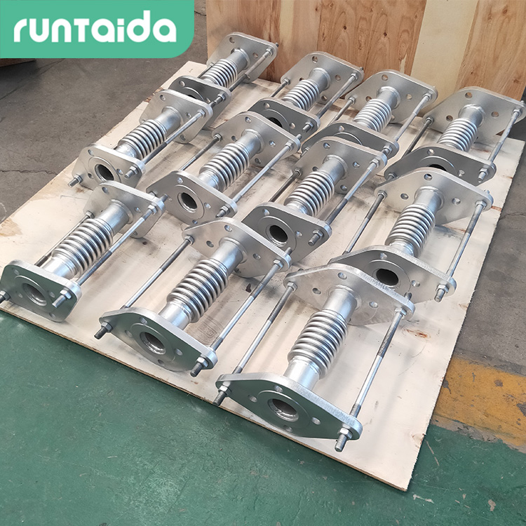 5.波紋補償器承壓焊縫焊接之后,應對承壓焊縫進行壓力試驗,試驗壓力為設計壓力的1.5倍。根據補償器的容積大小,保壓10~30min,檢查補償器各部位有無滲漏,受壓時*波距與受壓前波距之比不超過1.15。7.補償器組焊后應進行外觀和幾何尺寸的檢驗。補償器兩端面同軸度公差:當公稱通徑小于等于500mm時,為5mm;當公稱通徑大于500mm時,為公稱通徑的1%,且小于等于10mm 。補償器兩端面與主軸線垂直度公差為公稱通徑的1%,且小于等于3mm。補償器在出廠前進行預拉伸的,預拉伸后的出廠長度公差也應符合規定,對補償器自由狀態長度和預拉伸后的出廠長度分別進行檢。