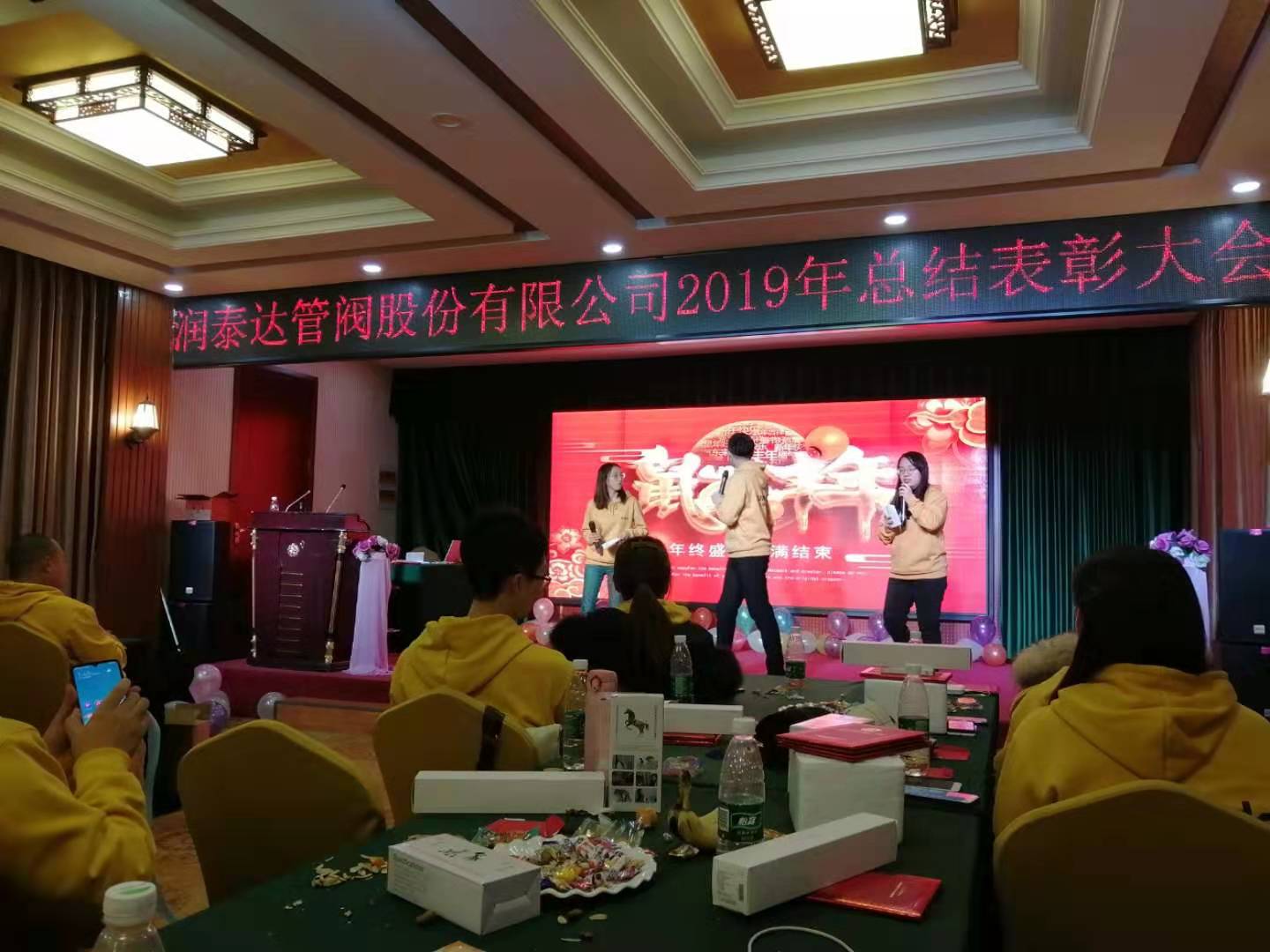 接下來,由公司領導進行了2019年度的總結,以及2020年度的規劃,2019年我們取得了很好的成績,內貿部,外貿部,以及工廠的兄弟們,我們一起共同為了一個目標,在努力的前行,在年末看著在一年里取得的成績與每個人都有關,讓我們的大家庭更強大,讓每個人的心里都很溫暖。2019年潤達管道加入了很多新的小伙伴,我們的隊伍也是在不斷地壯大,我們也是有信心把我們的業績做到更好,為我們的公司創造更到的成績。2020年我們還會增加更多的員工,更多的設備,更多的機會,去年做的不足的地方,今年努力改正,我們會朝著共同的目標,愿付非凡的代價,一起成長,共同進步。